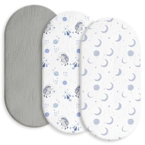Baby Mattress Cover, Fitted Sheet, Pack of 3, 100% Muslin Cotton,Oeko-Tex 100,Muslin Bassinet Sheets,Bassinet Cover,Pram Mattress Cover,83 x 43 x 11 cm,Fitted Sheet for Prams(Space Exploration)