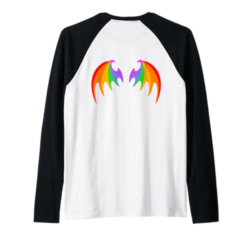 BACK PRINT Rainbow Dragon Bat Wings Cute Pride Party Magic Raglan Baseball Tee