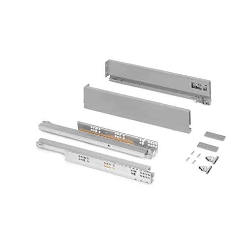 Emuca - Drawer kit for Kitchen or Bath Vertex, 40Kg (88 lb), Height 93mm (3,66 inch), Depth 450mm (17,7 inch), Soft Close, Boards not Included, Steel, Silver Painted