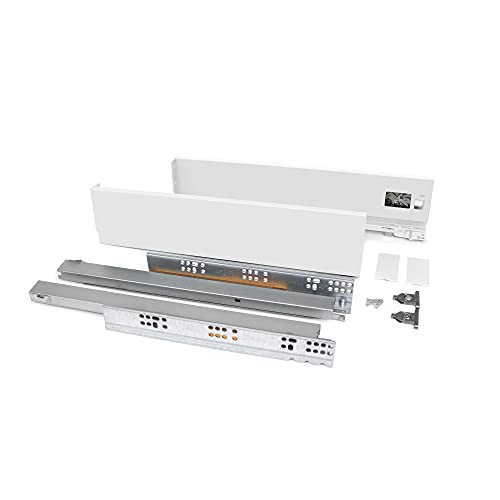 Emuca - Drawer kit for Kitchen or Bath, Vertex, 40kg (88 lb), Height 131mm (5,1 inch), Depth 500mm (19,7 inch), Soft Close, Boards not Included, Steel, White