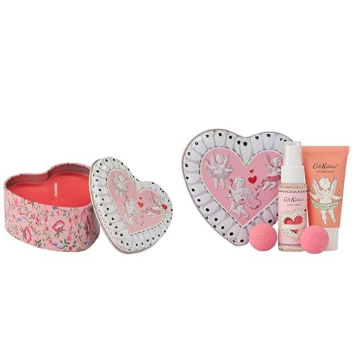 Cath Kidston Candle 100g in Heart Shaped Tin+Cath Kidston Body Spray and Wonder Balm x2 30ml, Bath Fizzers x2 10g, in Heart Shaped Tin