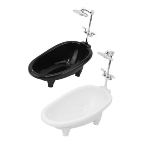 BCOATH 2pcs Mini Bathtub Set Miniature Dollhouse Bathroom Accessories Doll Bath Tub for Home Decor Family Play DIY Photo Prop White and Black