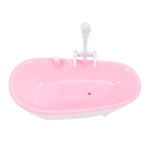 Toyvian Toy Bathtub for Dolls - Electric Water Spraying Bathtub Mini Doll Bath Tub with Shower Head for Dollhouse Furniture Pretend Play Toy for Kids
