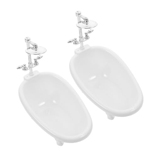 SUPVOX 2 Pcs Miniature Bathtub Dollhouse Furniture Compact White Doll Bath Accessory for Realistic Bathroom Scenes Compatible with Dollhouse Furnishings