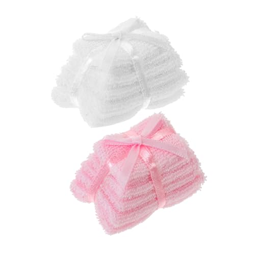 CIYODO 2pcs Miniature Dollhouse Towels Set Realistic Tiny Bath Towels for Doll Bathroom Accessories Compatible with Various Dollhouse Styles