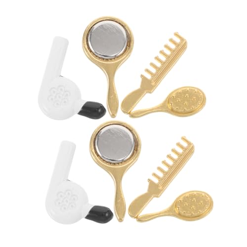 BESPORTBLE 8pcs Miniature Comb Hair Dryer Mirror Mini Hair Blow Dryer Pretend Play Miniature Furniture Mini Bath Accessories Dollhouse Doll Comb Dollhouse Decor Golden