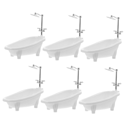 OFFSCH 6pcs Miniature Bathtub Set Dollhouse Bathtub Doll Bath Playset Mini Dollhouse Tub Play House White Abs