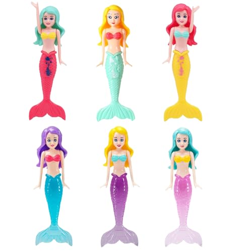 Mermaid Toys, 6 PCS Swimming Doll Bath Toy Set For Girls, Mermaid Pool Toys For Toddlers Water Bathtub, Fun Bath And Swimming Pool Games Diving Training