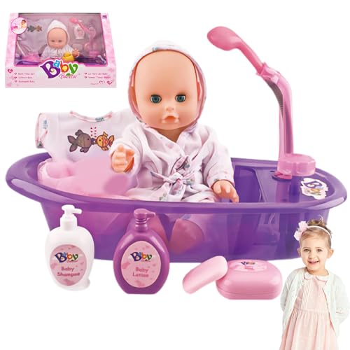 Rwigeboo Baby Doll Bathtub Set 12 Inch Safe Vinyl Realistic Simulated Bath Baby Doll with Real Working Bathtub Toy Set for 3+ Years Old Kids Toys