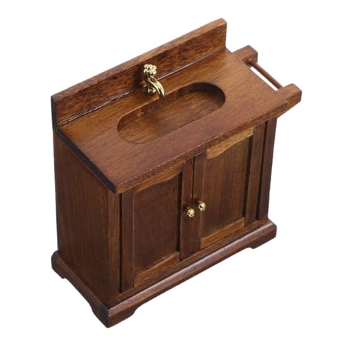SOIMISS Scale Dollhouse Bathroom Sink Cabinet with Functional Double Doors Miniature Kitchen Basin for Dolls House Smooth Edges Compatible with Doll Bath Accessories