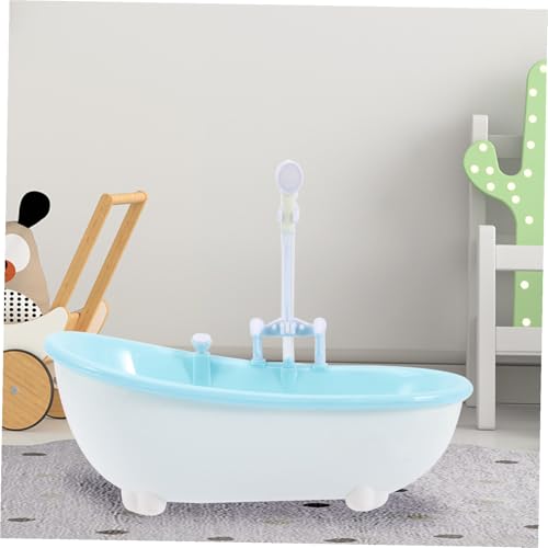 CLISPEED Miniature Bath Tub Dollhouse Bathroom Accessory with Special Accessories for Pretend Play Portable Lightweight Blue Plastic Doll Bath