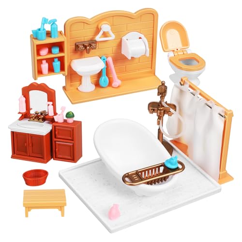 Abaodam Scale Dolls House Decoration with Shower Toilet Bathtub Sink Towel Rack Stool Essential Mini Bath Furniture for Doll Lovers