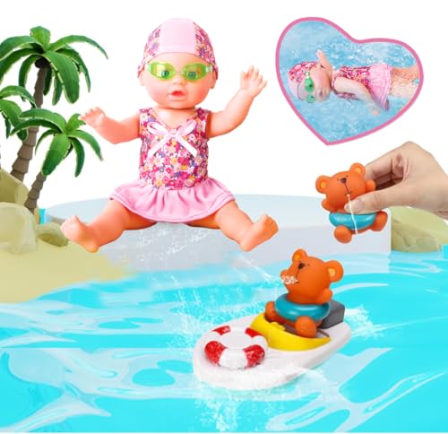 Renopfect Baby Doll for Pool Electric Swimming Doll, Floating Battery Operated Bath Baby Doll for Girls Home On the Go Indoor