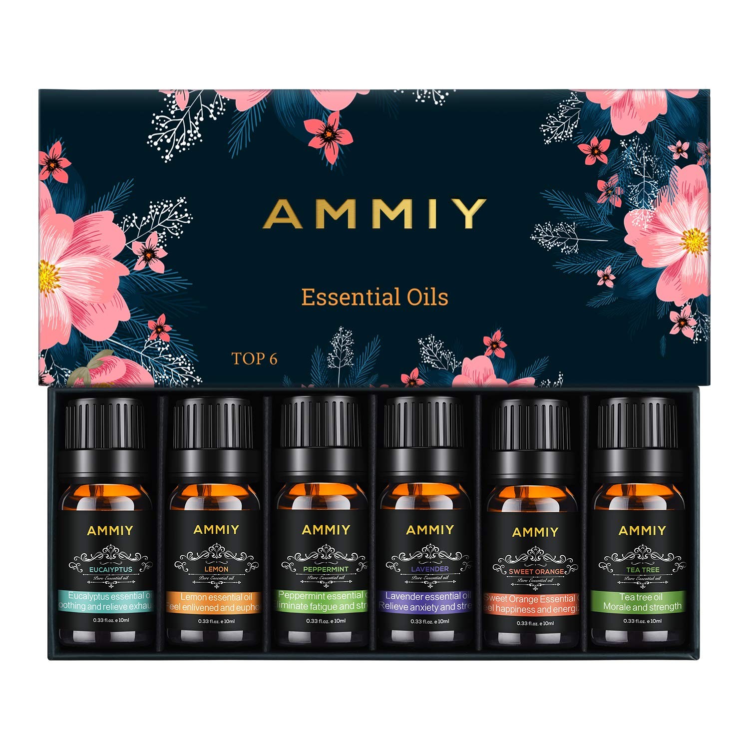 AMMIY Essential Oils Set of 6 x 10ml for Aromatherapy Bath Spa Diffuser