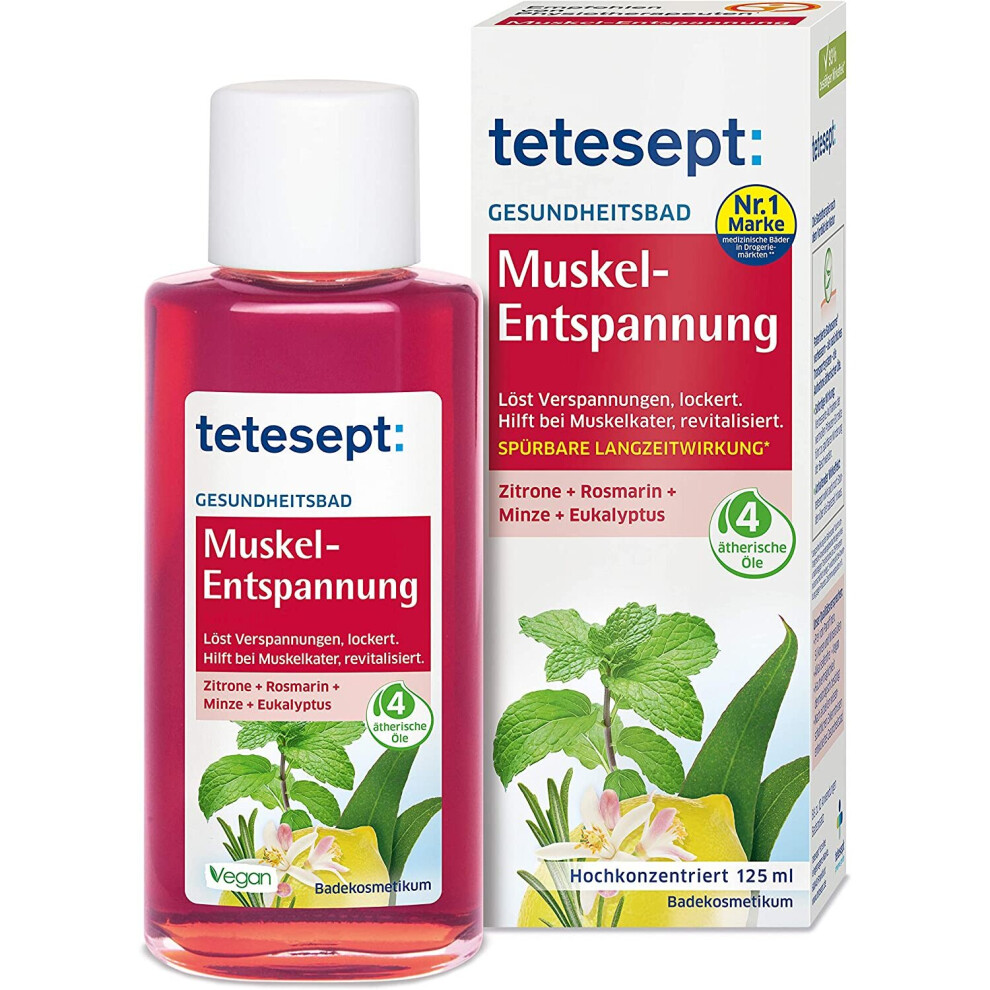 tetesept Muscle Relaxation - Revitalising and Soothing Health Bath with 4 Essential Oils - Bath Concentrate for Muscle Relaxation - 1 x 125 ml
