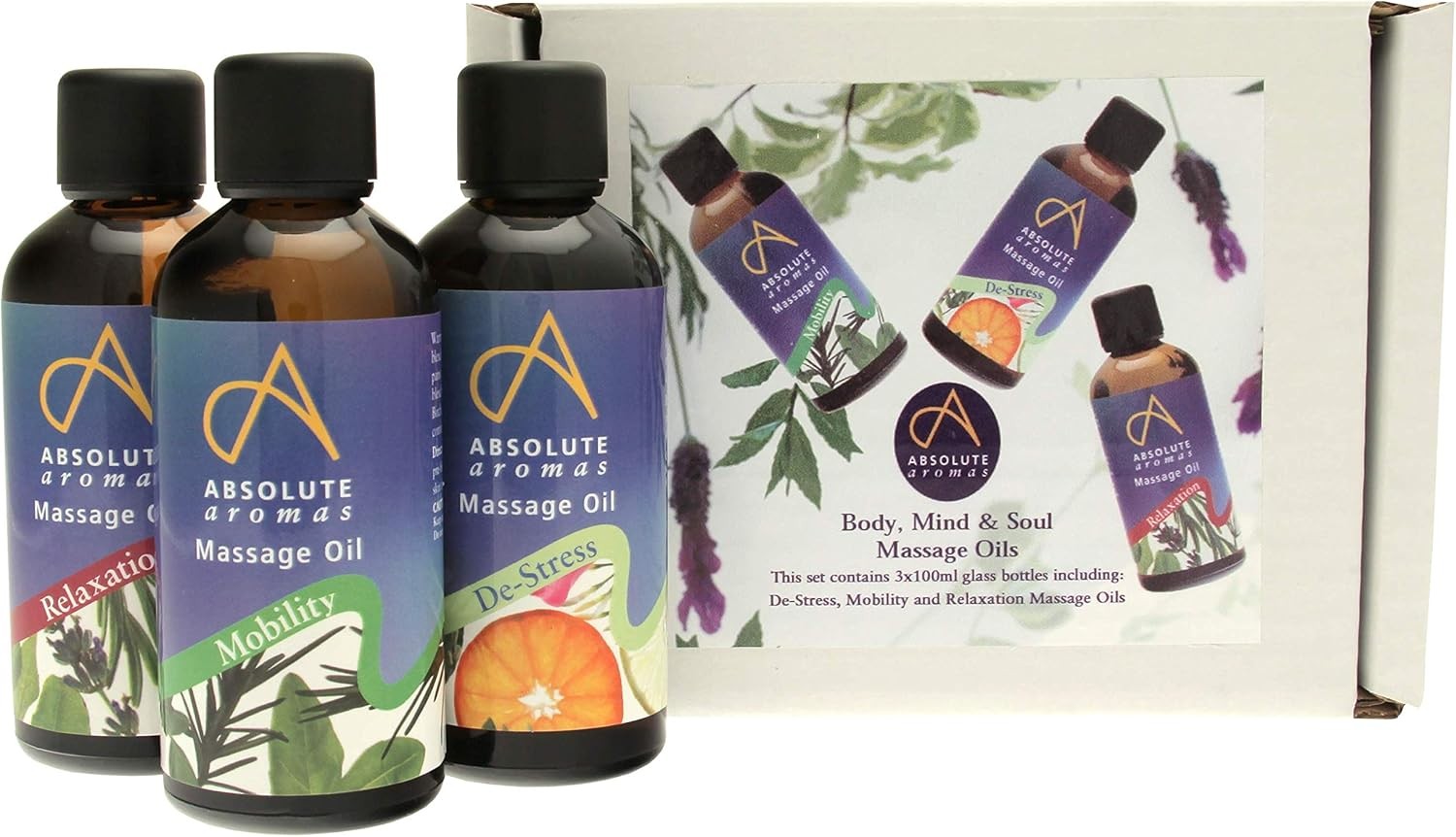 Absolute Aromas Body, Mind & Soul Bath & Massage Oils 3 x 100ml in Glass Bottle
