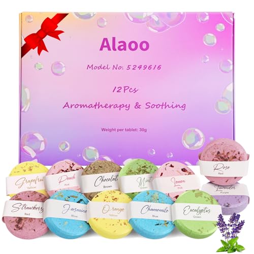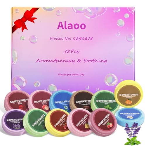 Alaoo Shower Steamers Aromatherapy, 12 Pack Aromatherapy Shower Tablets, Essential Oils Bath Tablet for Stress Relief, Lingering Intense Aroma, Shower Bombs Gift Set for Girl, Women, Wife (Regular)