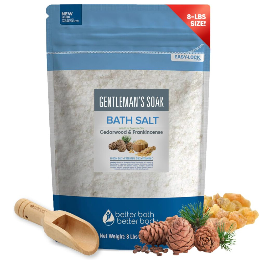 Gentleman's Bath Salt 128 Ounces Epsom Salt with Natural Cedarwood Frankincense Eucalyptus and Peppermint Essential Oils Plus Vitamin C in BPA Free