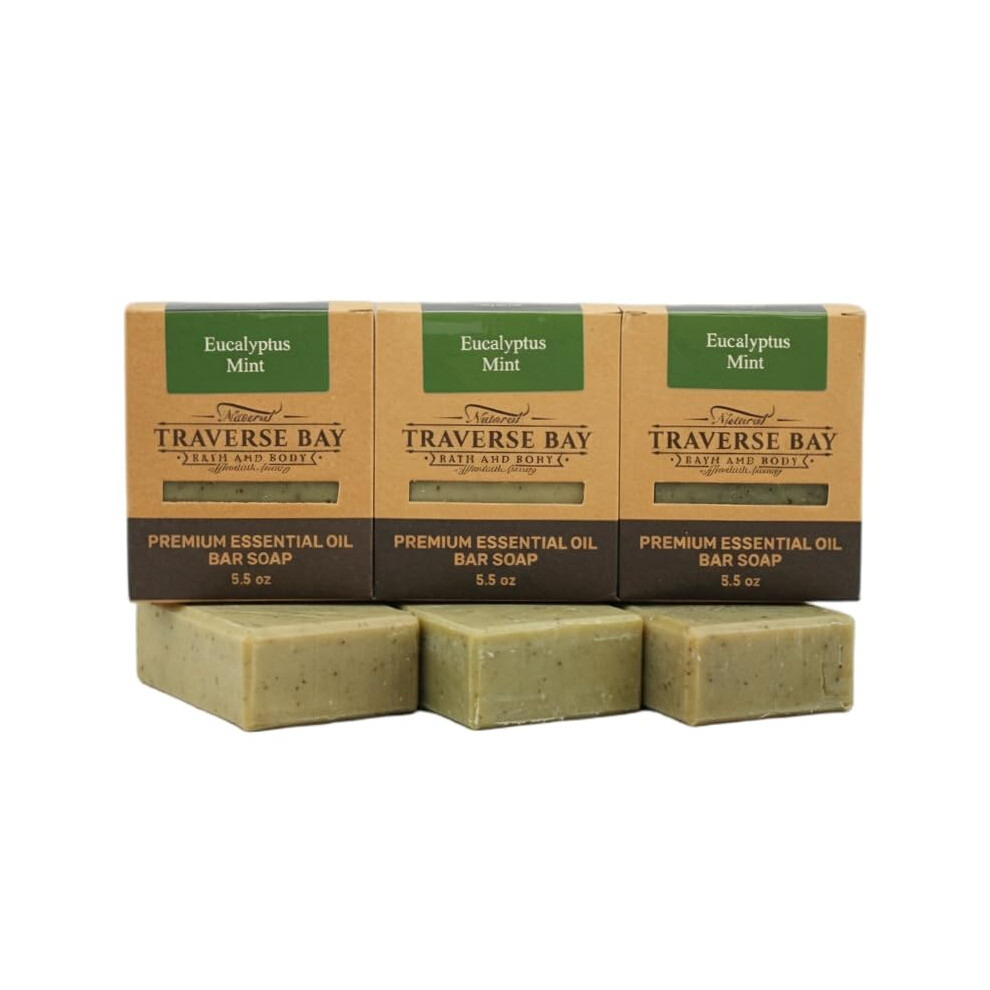 Traverse Bay Bath and Body- All natural handmade cold process bar soap Eucalyptus and Peppermint made in the USA essential oils. 3 bar pack 15 + oz