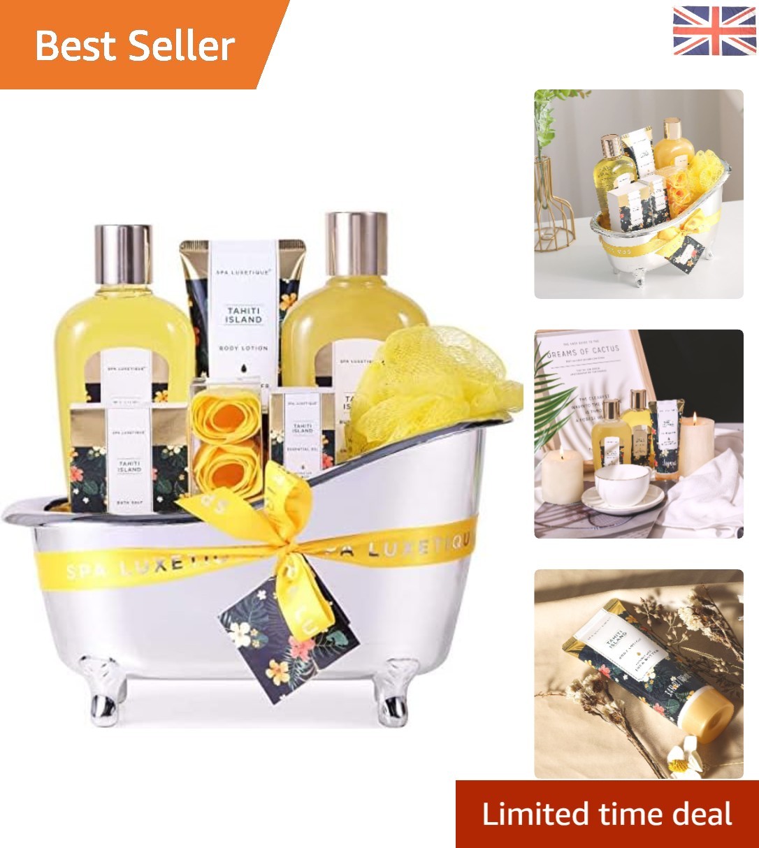 Relaxing Tahiti Bath Set - 8-Piece Gift for Her with Essential Oils & Bath Salts