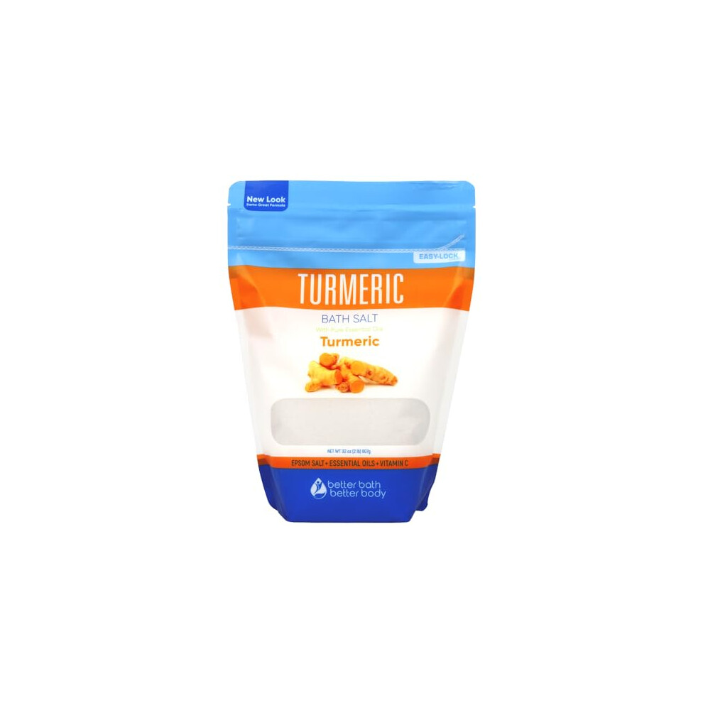Turmeric Bath Salt 32 Oz Epsom Salt with Essential Oils Turmeric Cinnamon Orange Plus Vitamin C in BPA-Free Pouch with Easy Press-Lock Zipper |
