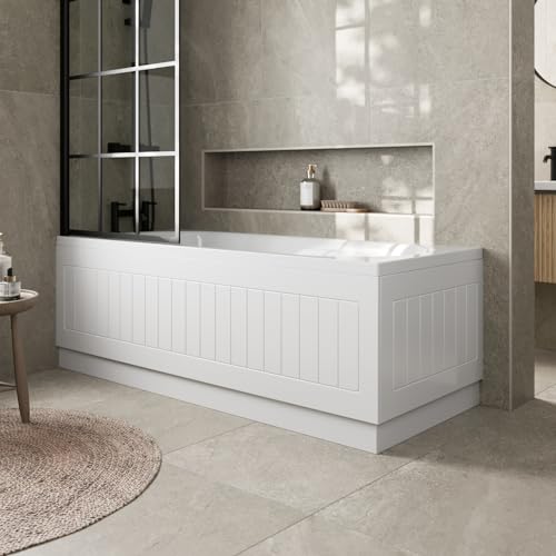 Affine® Tongue & Groove 1700 Side Front Panel & 700mm End MDF Bath Panel 15mm, Modern Wooden Panels for Bathroom Baths Soaking Tubs, Adjustable Plinth, Easy to Cut, White