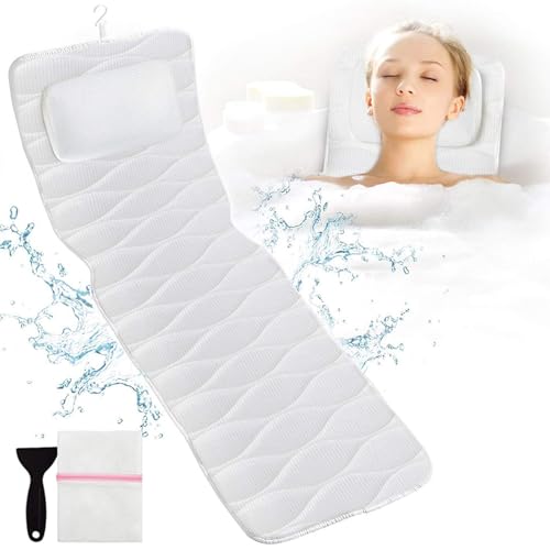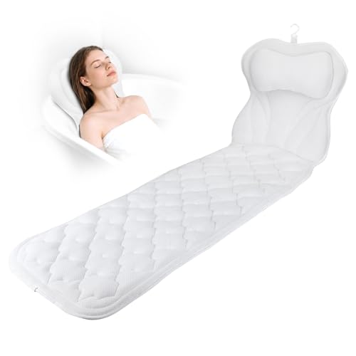 Full Body Bath Pillow for Tub - Extra Long & Thick Tub Pillow with Head, Back & Lumbar Support, 168 Non-Slip Suction Cups, Soft 5D Air Mesh Spa Cushion, Quick-Dry & Machine Washable – Fits All Tubs