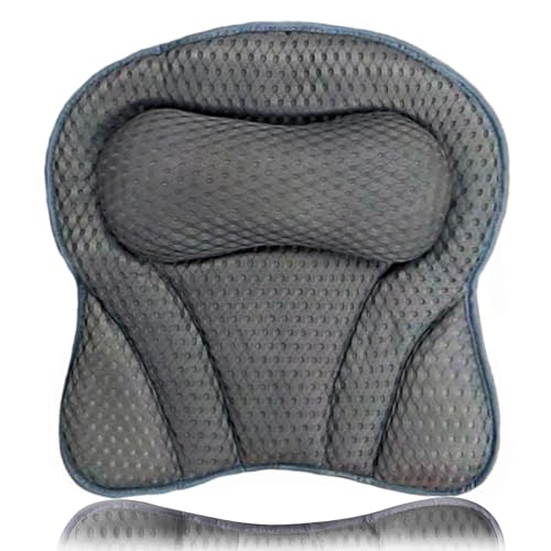 Bathtub and Spa Pillow with 2 Suction Cups, Bath Pillows with Head Neck and Back Support, Ergonomic Bath Pillow, Bath Cushion, Bathing Pillow, Good Air Permeability 3D Mesh Cloth Pillow (Gray)