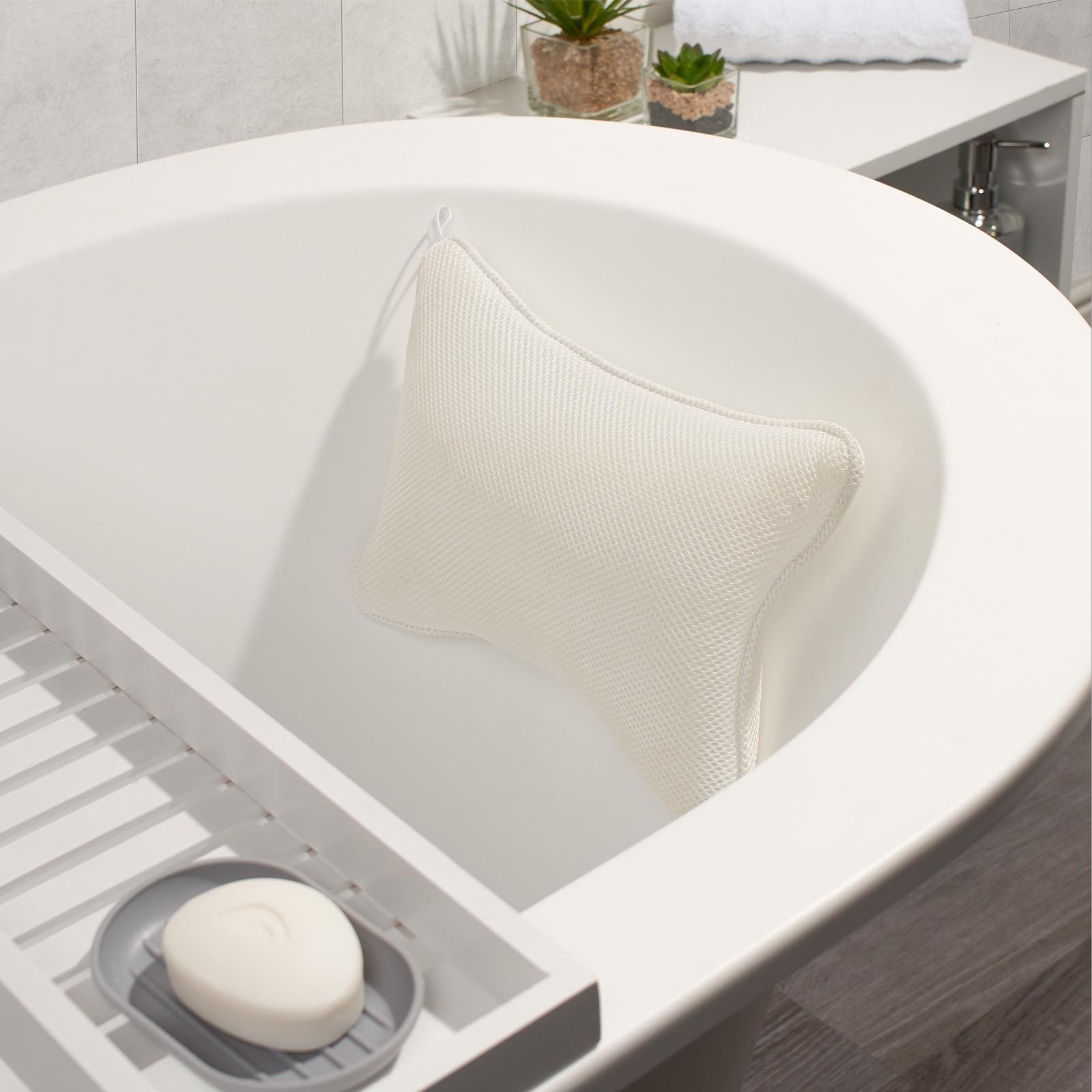 Everlasting Comfort Bath Pillow – Bath Cushion for Head and Neck Support – Quick Dry Waterproof Mesh – Luxury Bath Accessories with Suction Cups – Bath Pillows for Head and Neck – White