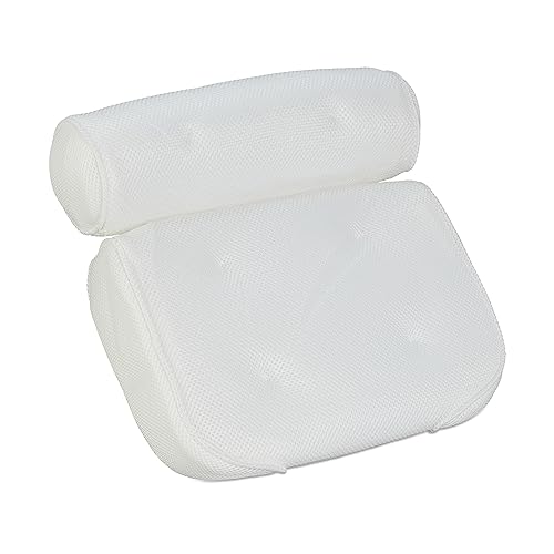Relaxdays Bath Pillow, Headrest, Tub Cushion, Support Neck & Shoulders, 6 Suction Cups, HxWxD: 9 x 38 x 36 cm, White, Polyester