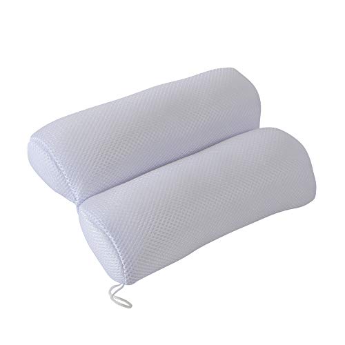 FINEWAY Bath Pillow with 6 Suction Cup and Air Mesh Technology, Ergonomic Design Helps Support Head and Neck, Non-slip (White)