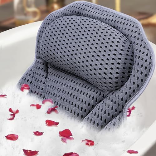 ADOV Luxury Bath Pillow, Non-Slip Comfortable Bathtub Pillow with 6 Suction Cups, Ergonomic 4D Air Mesh Headrest Cushion for Head, Shoulder, Neck and Back Support Home Spa Hot Tub Jacuzzi (Grey)