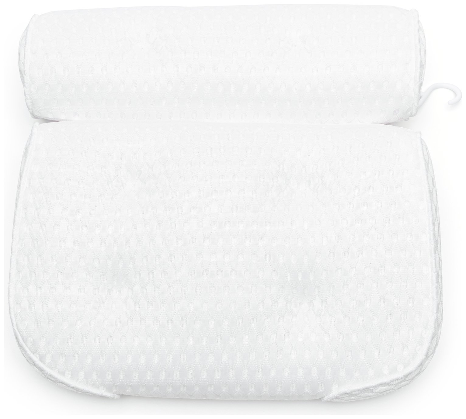 Fineway Bath Pillow - Breathable 3D Mesh Bath Pillow for Head and Neck with 6 Suction Cups, Hanging Hook and Air Mesh Technology - Ergonomic Design Bath Cushion Pillow for Bathtub - White