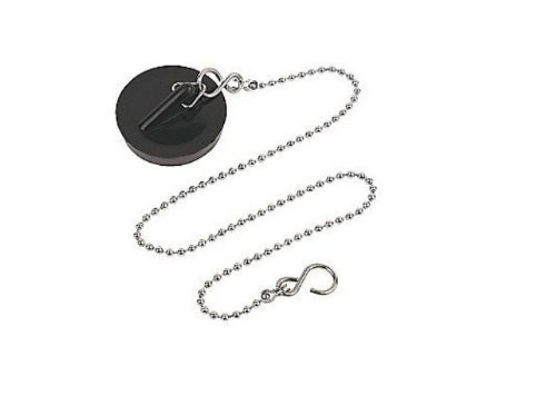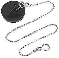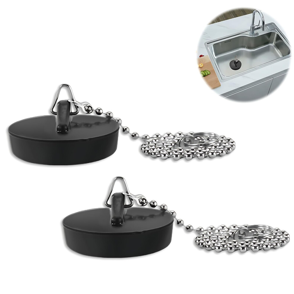 Elegant 1.75" Black Rubber Bath Plug and Stainless Steel Chain - Universal Fit