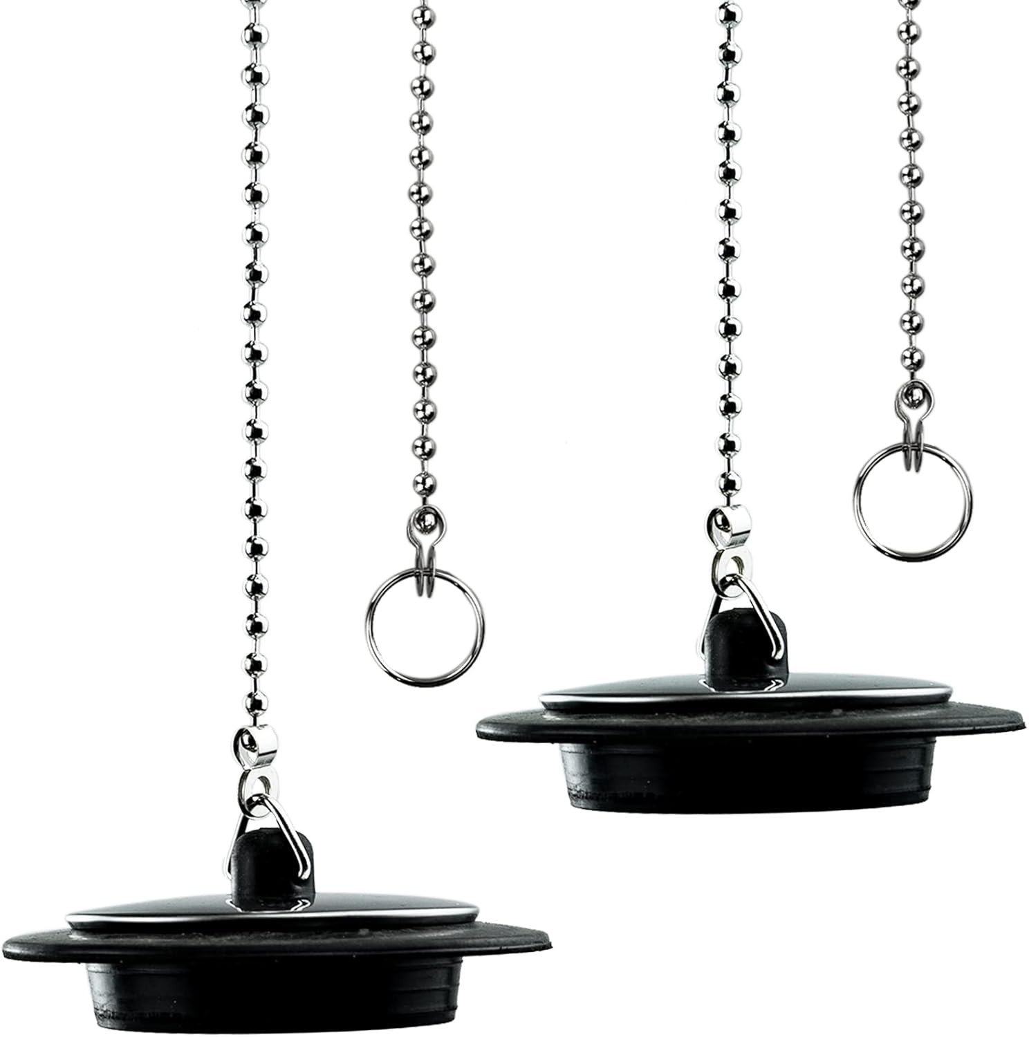 Universal Rubber Bath Plug with Stainless Steel Chain - 1.75 Inch Sink Stopper
