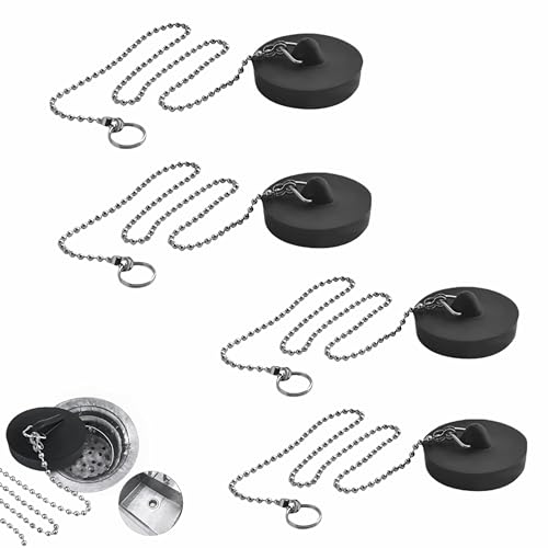 4 Pcs Universal Bath Plug, Kitchen Sink Plug with Stainless Steel Chain, Universal Bath Plug with Stainless Steel Chain and S-Shaped Hook,Drain Stopper for Kitchen Bathroom Home,41 mm to 43mm