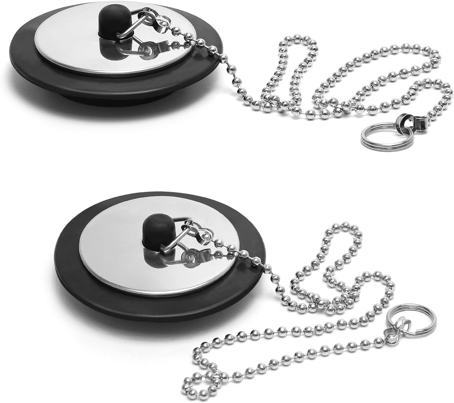 2 Pcs Universal Bath Plug with Stainless Steel Chain, Bath Plug Replacement, Bathroom Sink Plug Replacement, Drain Stopper for Bathroom and Kitchen,