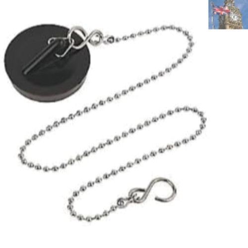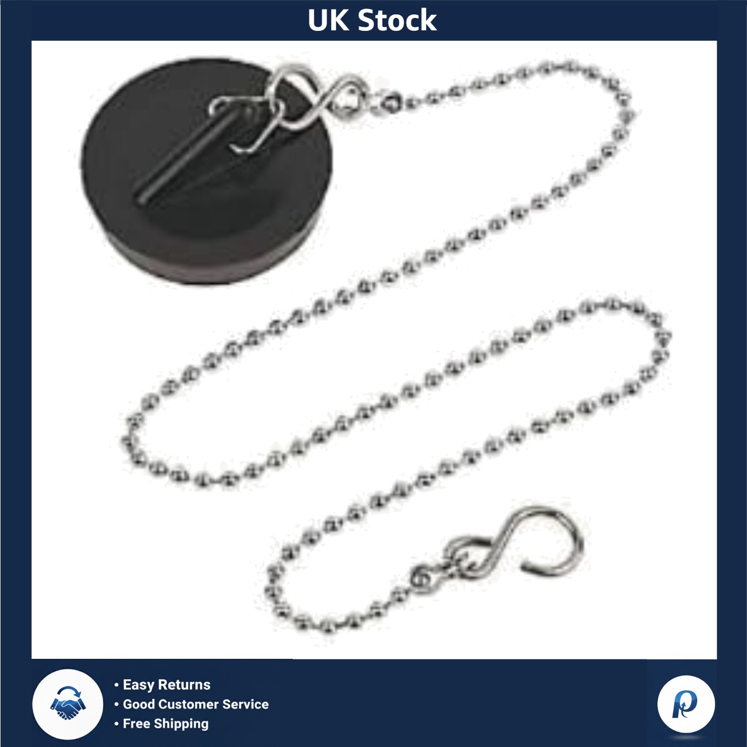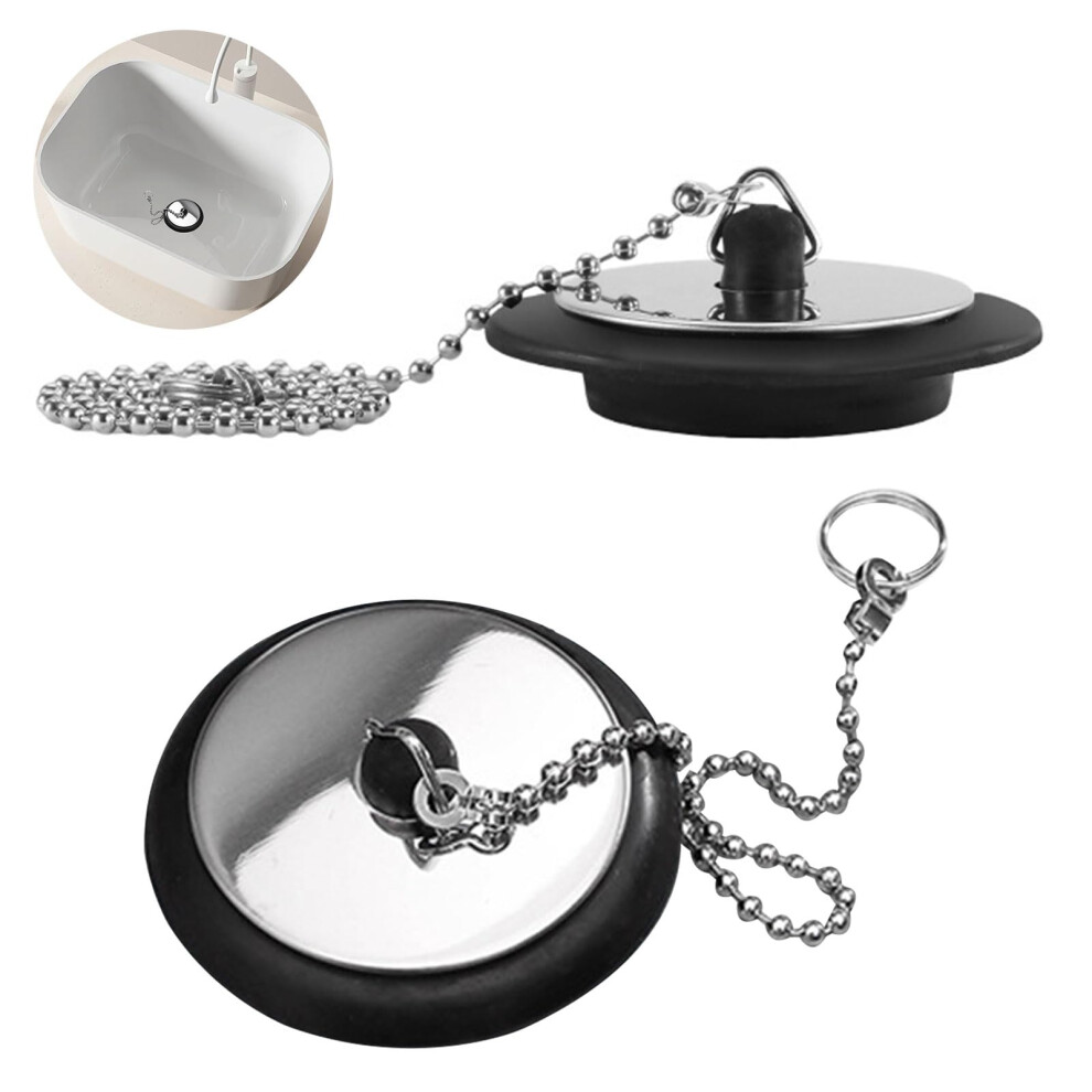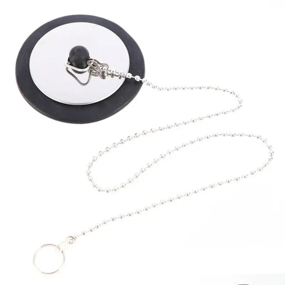 Universal Rubber Bath Plug and Chain - Bathroom Sink Plug Drain Stopper 45mm (1