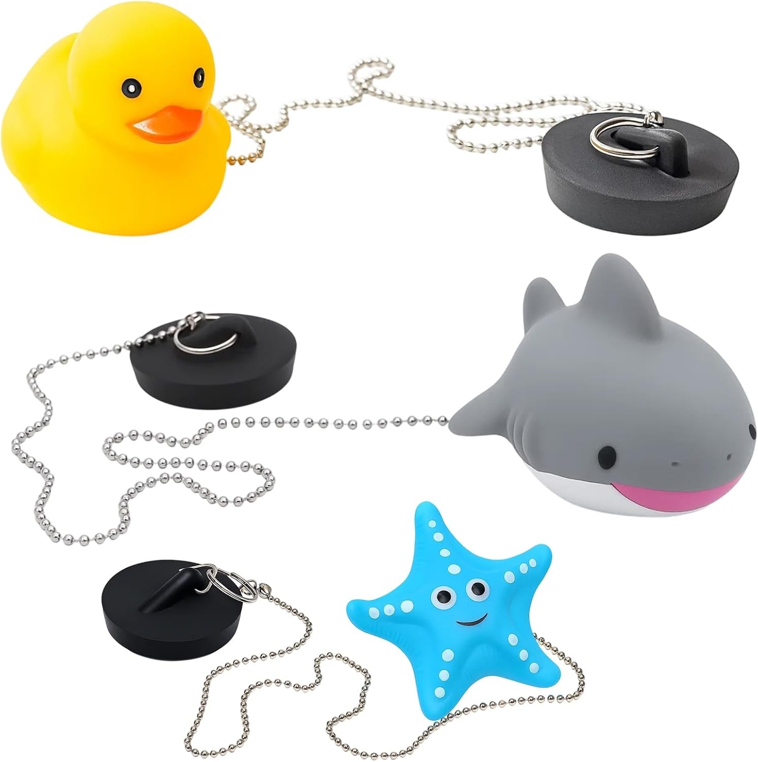 Bath Plug And Chain, 3 Cartoon Floating Chains, Cute Duck,...