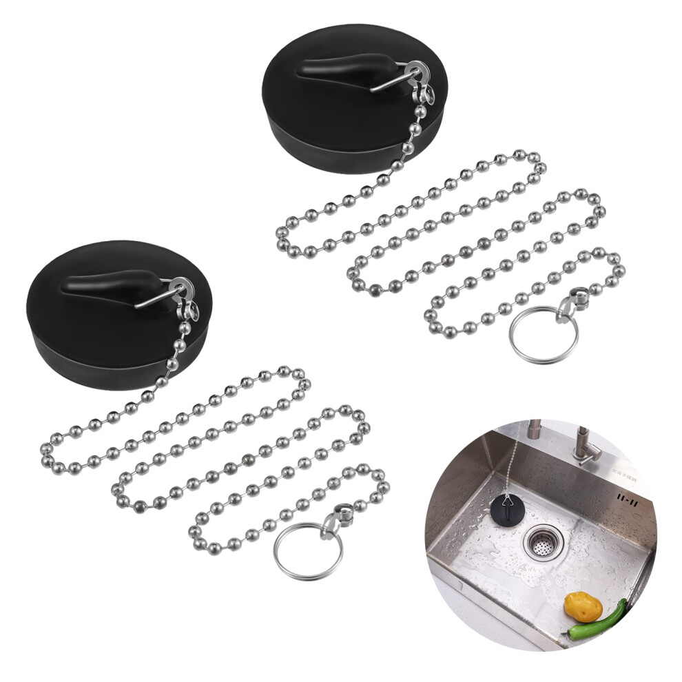Bath Plug and Chain 43mm Universal TwoPack Sink Plug Replacement Black Rubber 40cm Stainless Steel Chain Odor Resistant