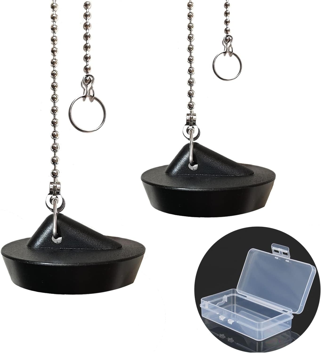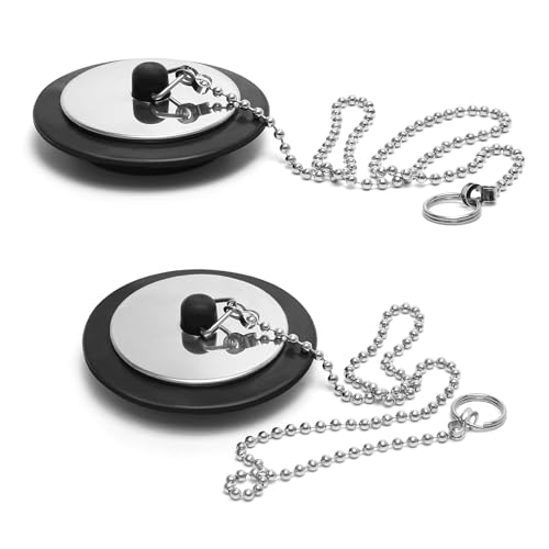 YUNYU 2 Pcs Universal Sink Plug with Chain, Bathroom Sink Plug Replacement, Drain Stopper for Bathroom Kitchen, Rubber Bath Plug with Stainless Steel chain (Size 1.57in To 1.77in, Chain 16.5in)