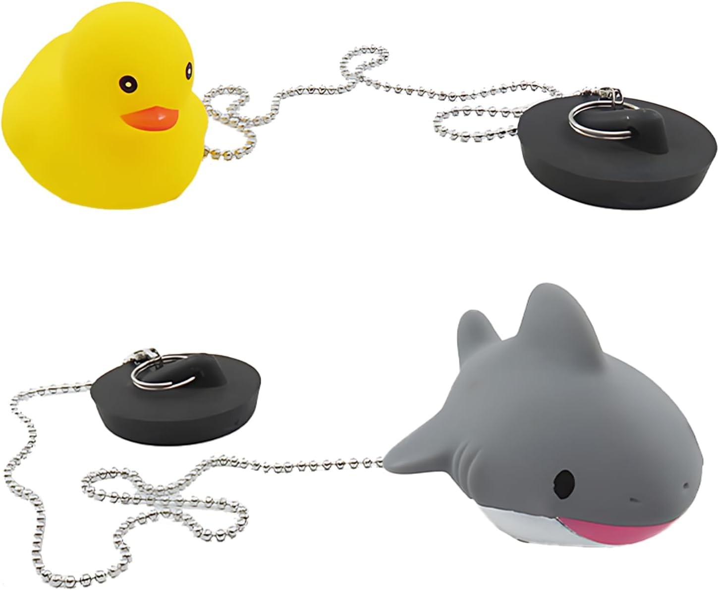 2 Pcs Bath Plug and Chain, 6.5x6.5cm 6x4cm, Duck Shark Shaped Bath...