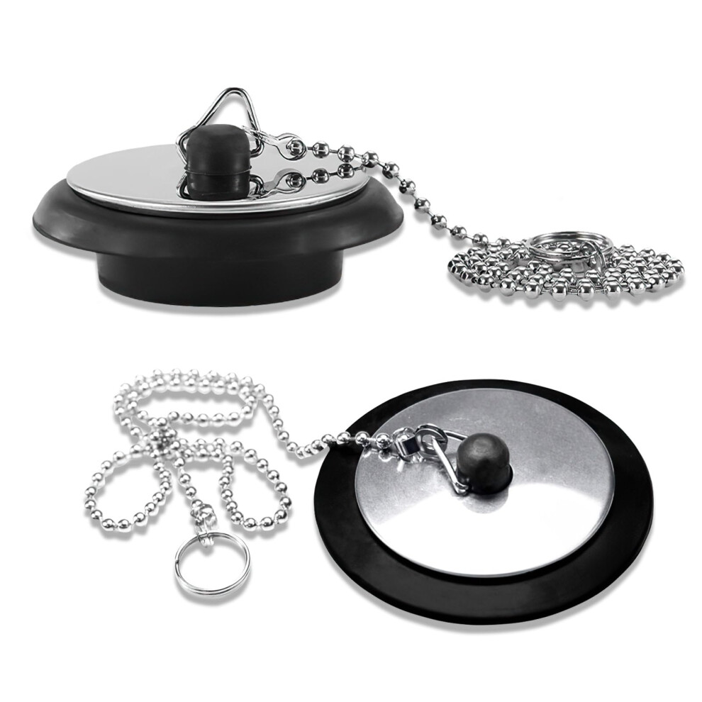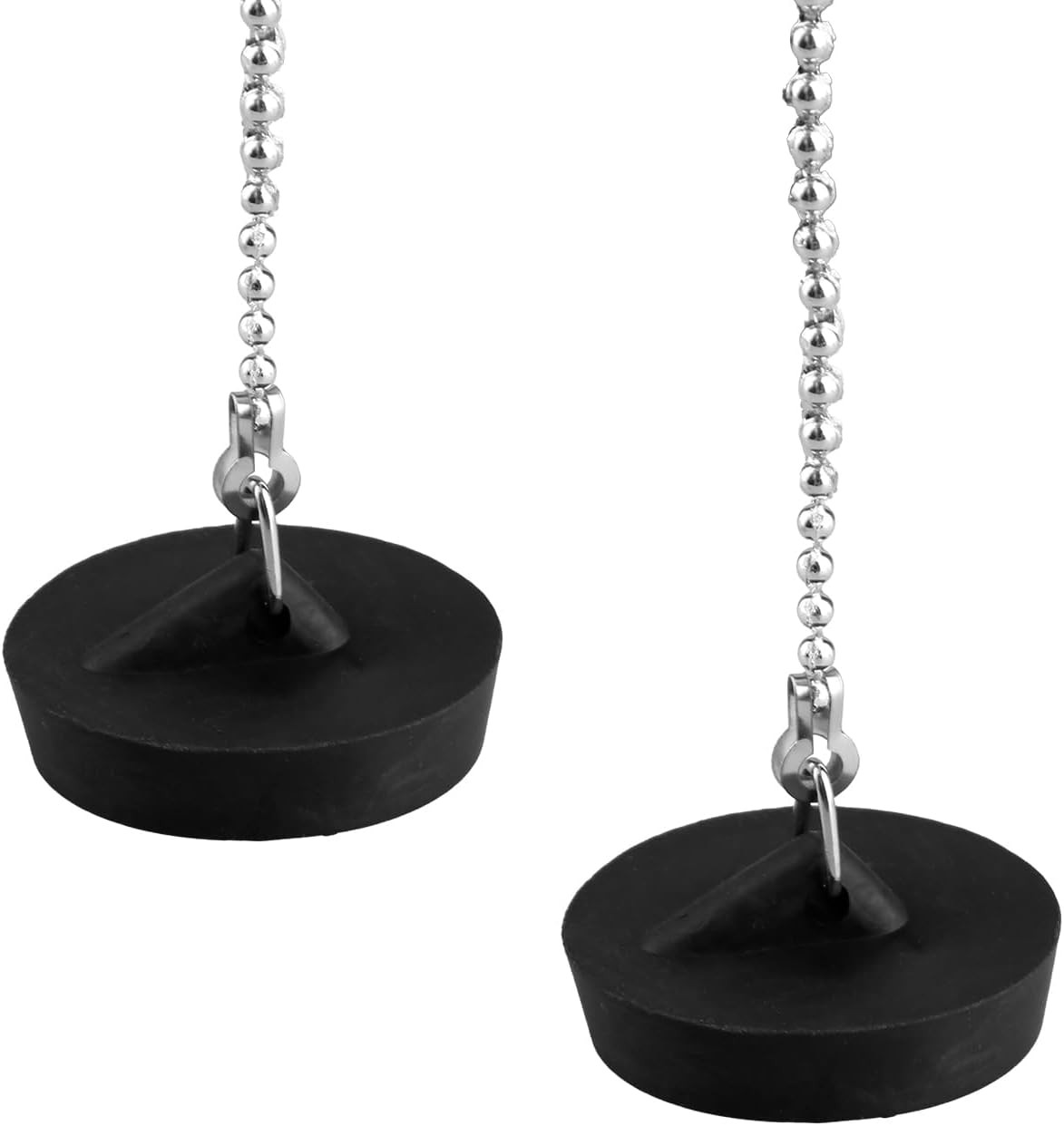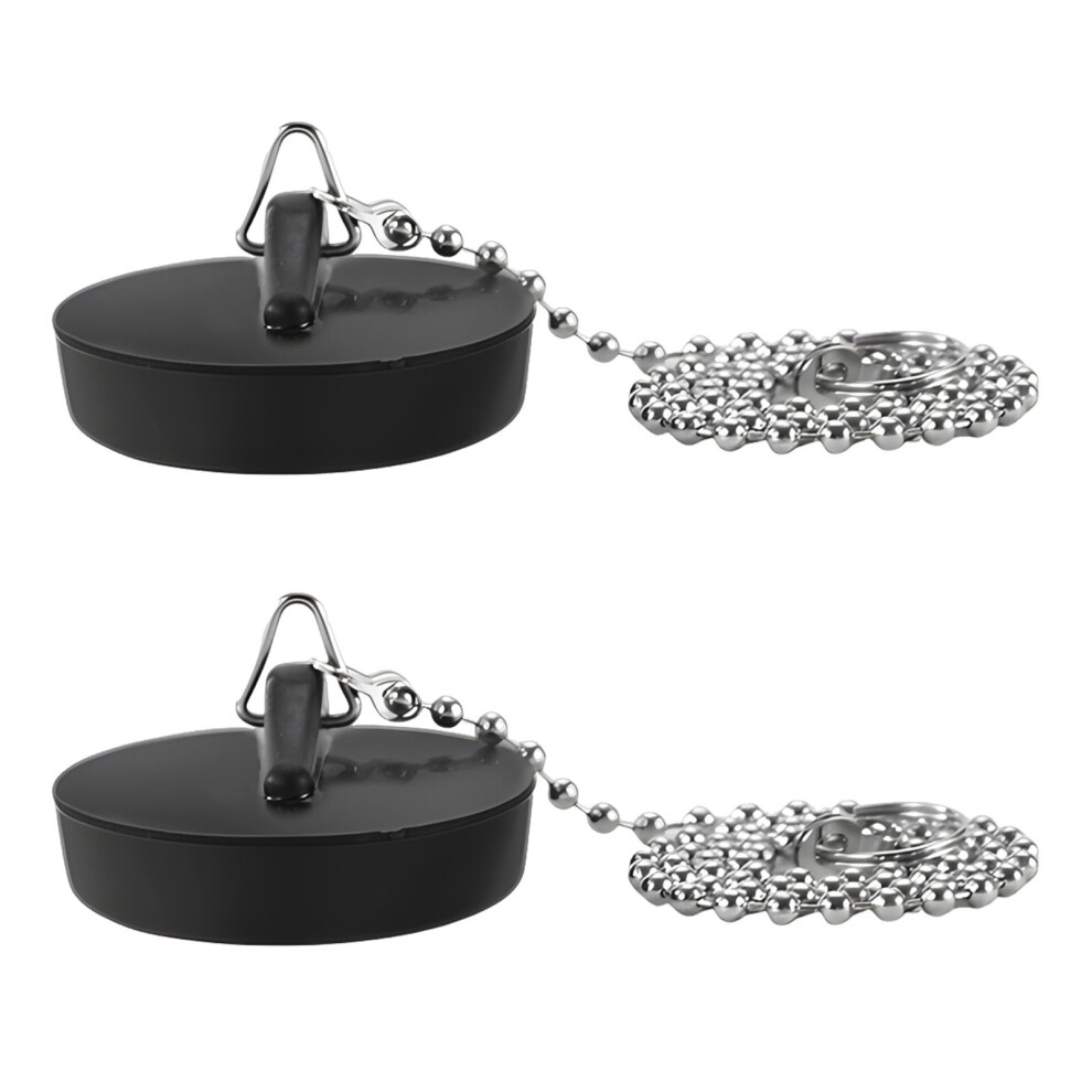Universal Bath Plug and Chain Replacement 2 Pack Black Rubber Stopper 4245mm Stainless Steel Chain 16.5in Sink Drain