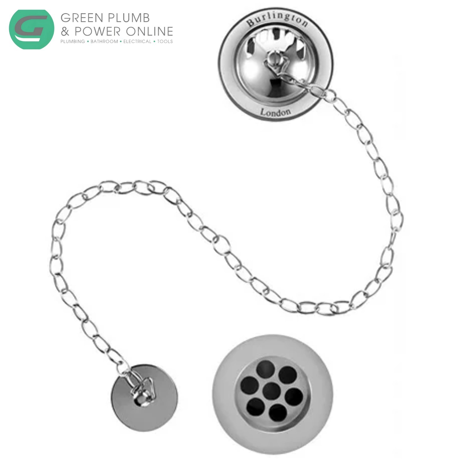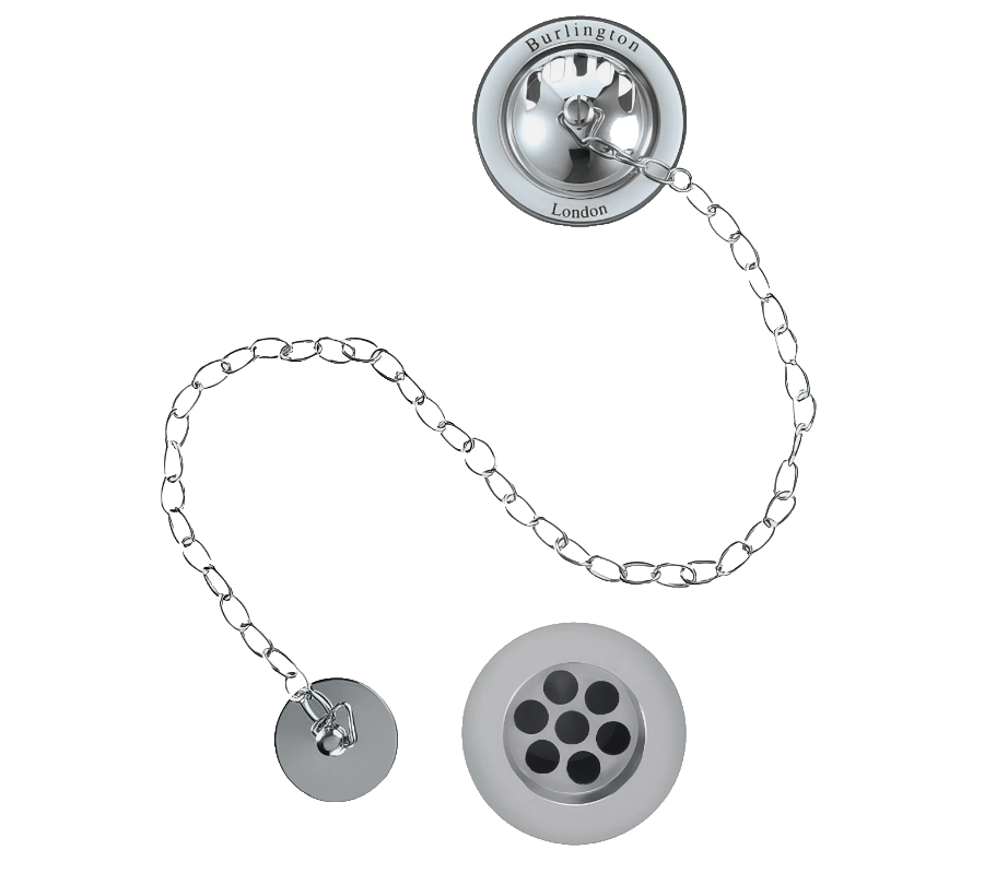 Burlington Chrome Traditional Bath Overflow Waste Plug & Chain Chrome - W3