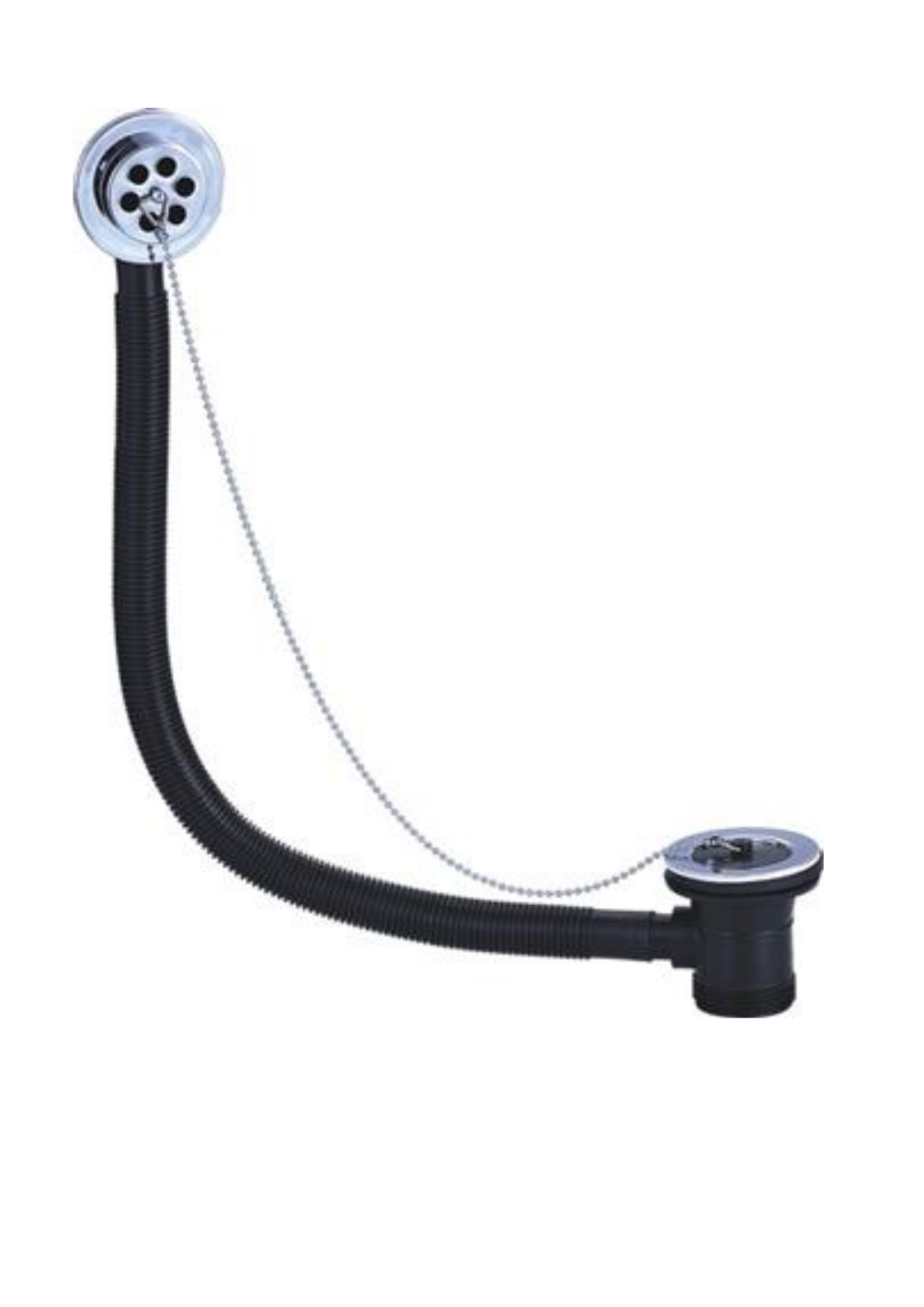 Bath Combination Waste Plug Chain 40mm 1.5" Flexible Overflow Pipe Chrome Silver