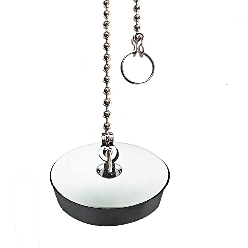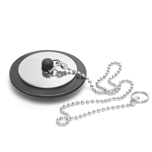 Universal bath plug with Stainless Steel Chain, bath plug replacement, Drain Stopper for Bathroom and Kitchen, bath plug and chain, Size 1.65in to 1.77in, Chain Length 16.5in