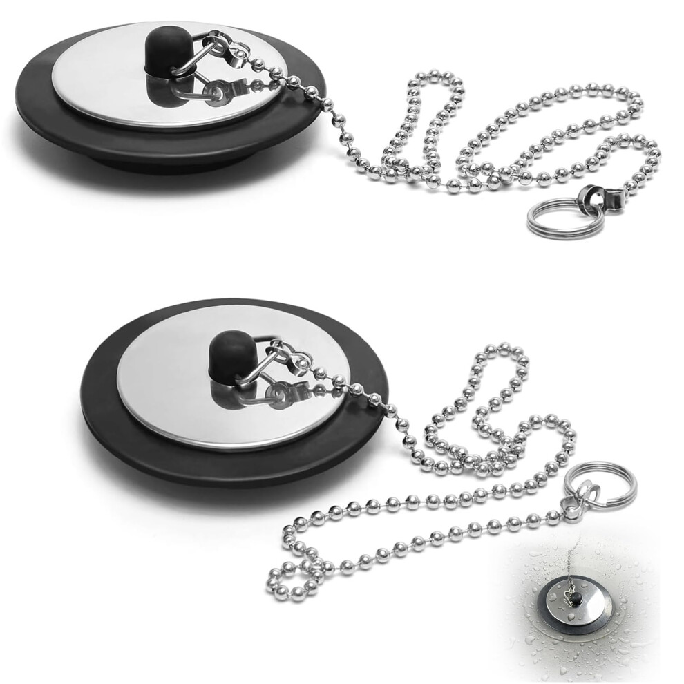 Fuyamp 2 Pcs Drain Stopper Sink Plug, Universal Bath Plug with Stainless Steel Chain and S-Shaped Hook,Drain Stopper For Bathtub Sink Bathroom Kitche