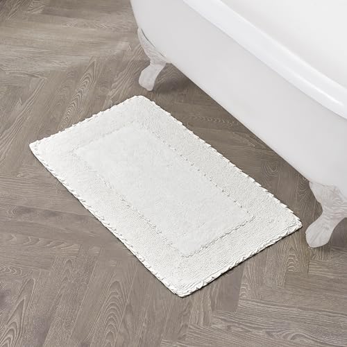 Laura Ashley Ruffle Cotton 20" x 34" Bath Rug, White