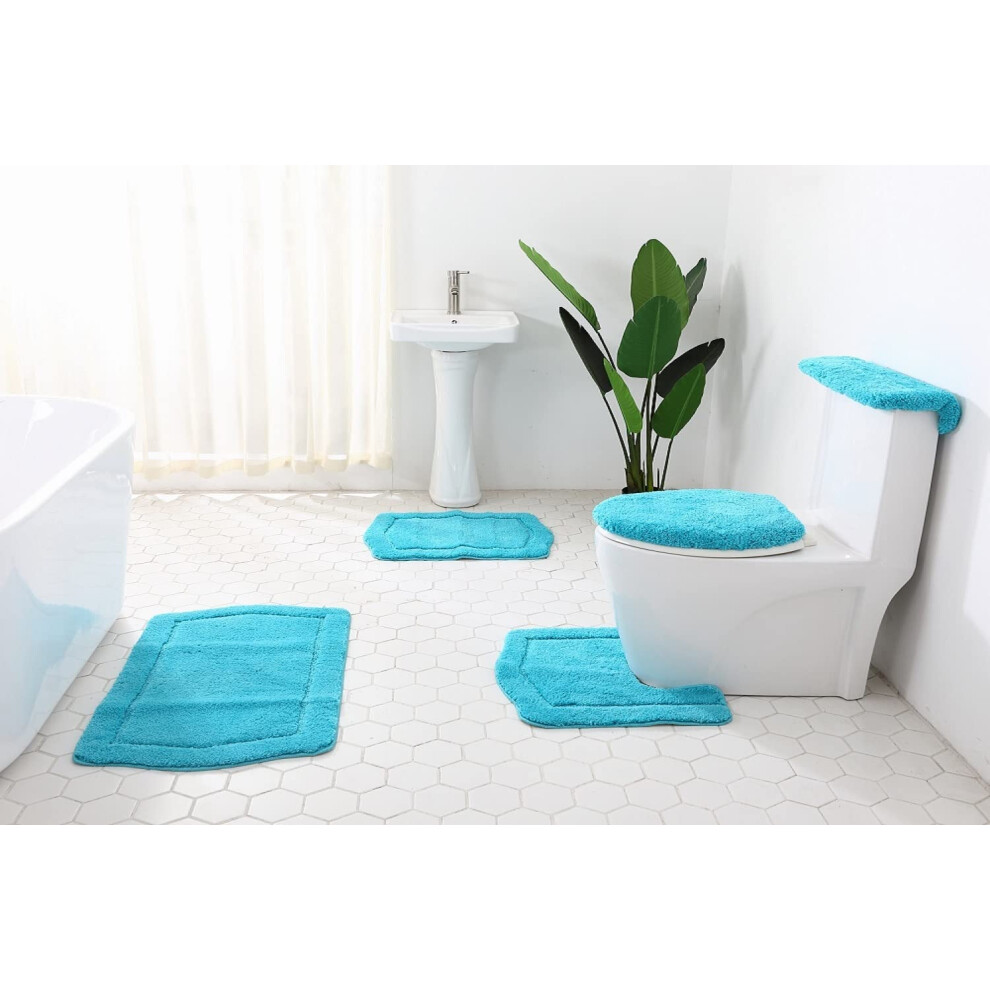 jianyana 3 Piece Bathroom Rug Set Non Slip Microfiber Shaggy Soft Bath Shower Mats Contour Bath Rug Toilet Seat Cover Combo