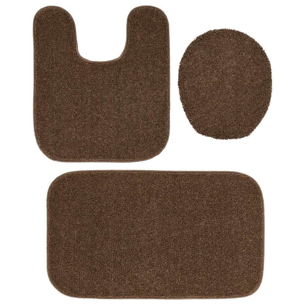 Garland Rug Gramercy Plush Polypropylene Washable Bath Rug Set 3 Piece (Toilet Lid Cover Contour Rug 20"""" x34' Bath Rugs) Cinnamon